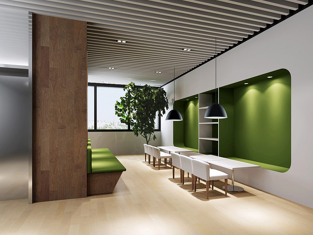 茶水間通常是一個(gè)相對(duì)安靜的空間,所以可以選擇較為柔和的顏色進(jìn)行搭配,如米色、淺灰色、淡藍(lán)色等。這些顏色能夠營(yíng)造出溫馨、舒適的感覺(jué),讓員工感到放松和愉悅。
